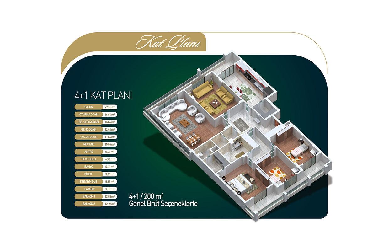 ZEMİN: Laminat parke ve süpürgelik olacaktır. DUVAR: Alçı üzeri duvar kağıdı veya alçı üzeri su bazlı saten boya kullanılacaktır. TAVAN: Saten alçı üzeri plastik boya kullanılacaktır.